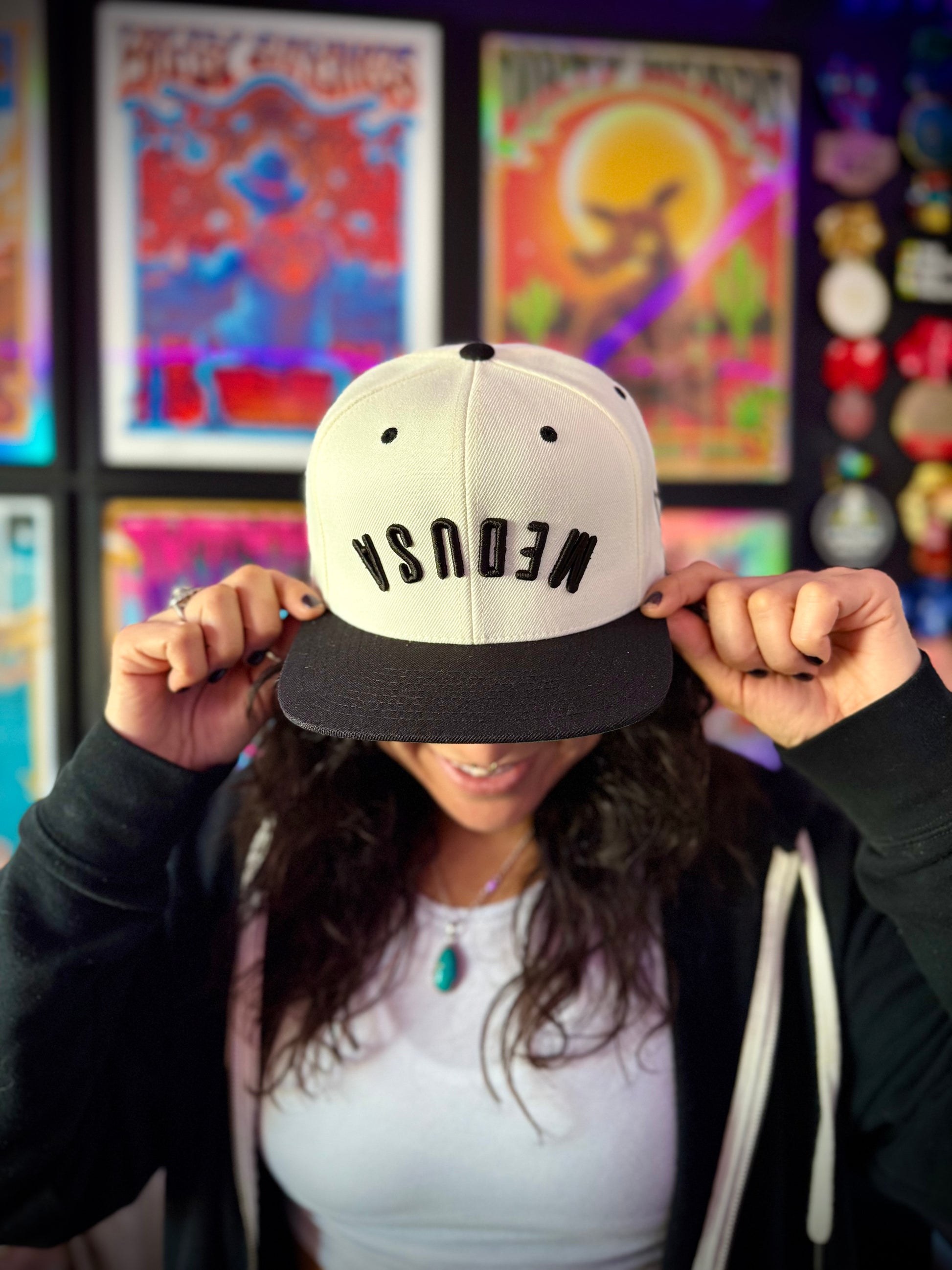 Cream& Black Medusa flat bill hat