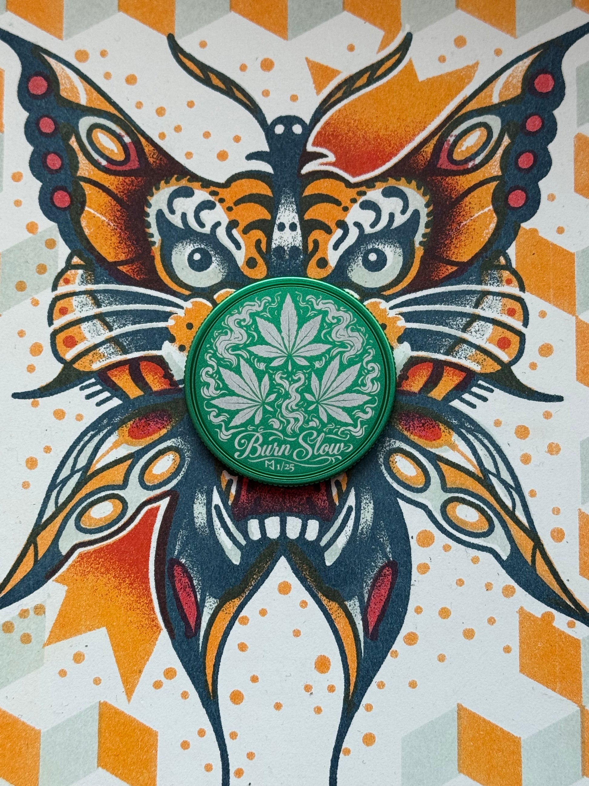 LE 25. Lasered 40 mm aluminum. Green anodized